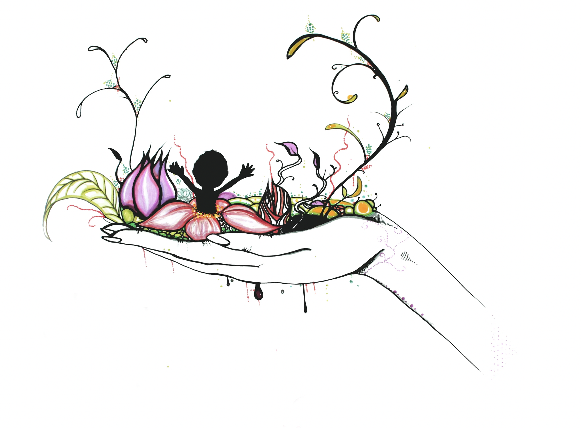 My hand-painted watercolor art and lineart on wearable items. T-shirts, hoodies, all ages and sizes.