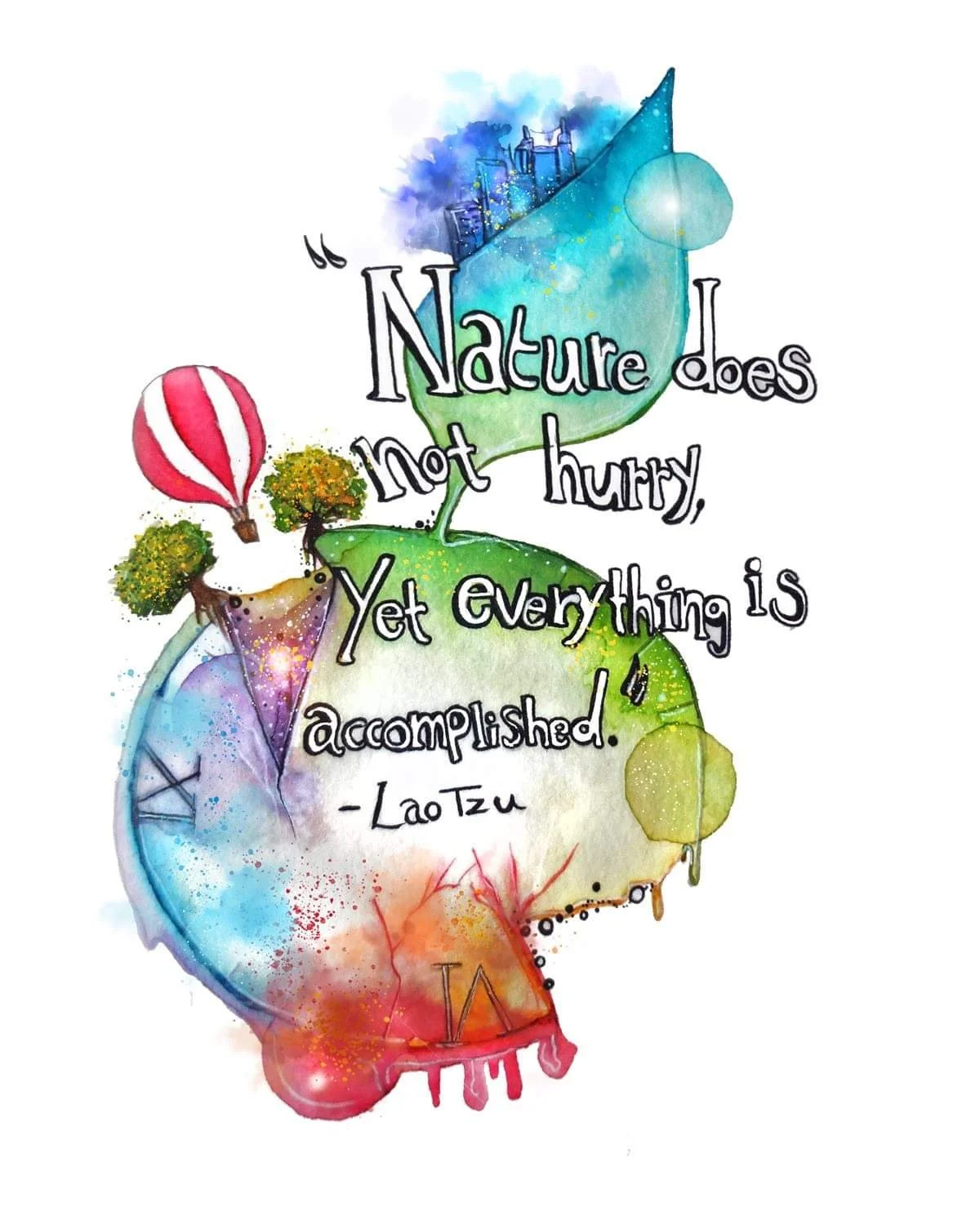 The art I create is mainly done by hand with watercolours and other mediums. My computer is also a helpful friend for details!